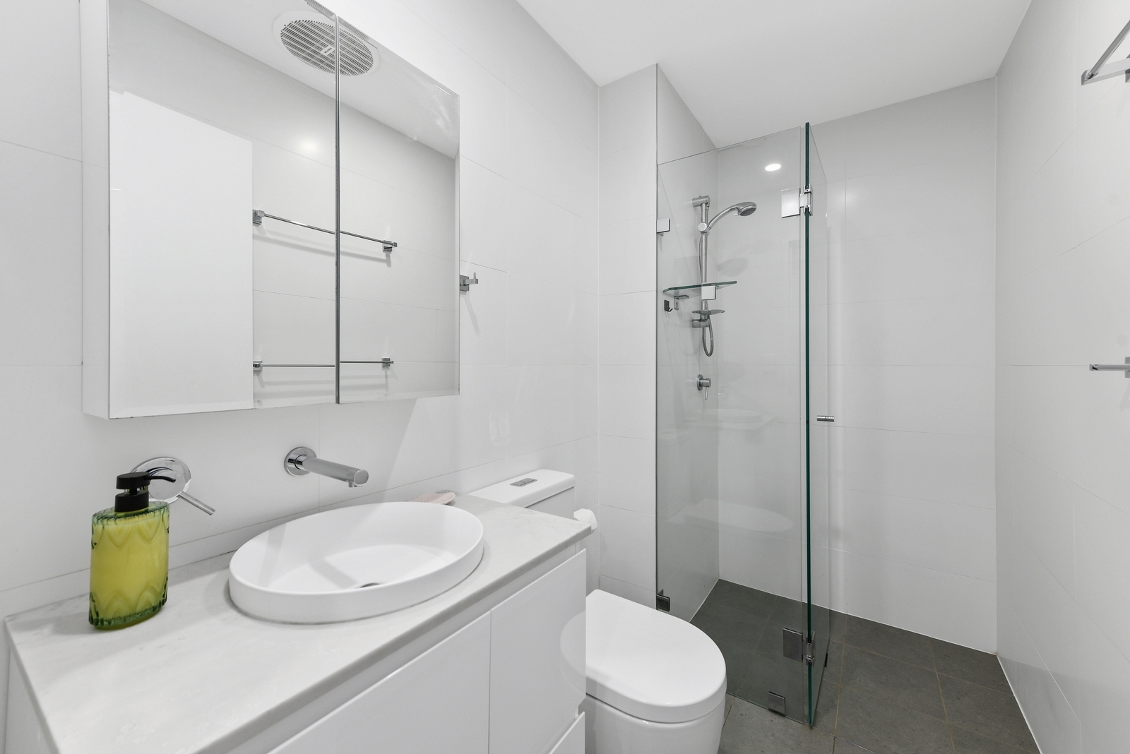 • Integrated appliances, stone benches and custom joinery • Both living and bedroom open to a covered balcony • Internal laundry with ample storage • Walk in wardrobe, clever lighting and study nook • Lock up storage cage located on same level as apartment