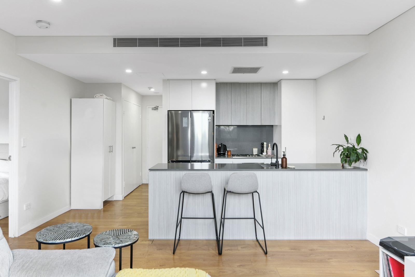 Located in a stunning, modern security building, this private apartment is equipped with a sleek kitchen with modern appliances, newly installed hardwood floors, open plan living, oversized bedroom with built in robe. A neat bathroom with separate discreet internal laundry, reverse cycle air-conditioning, plus a bright east facing balcony capturing water glimpses.
